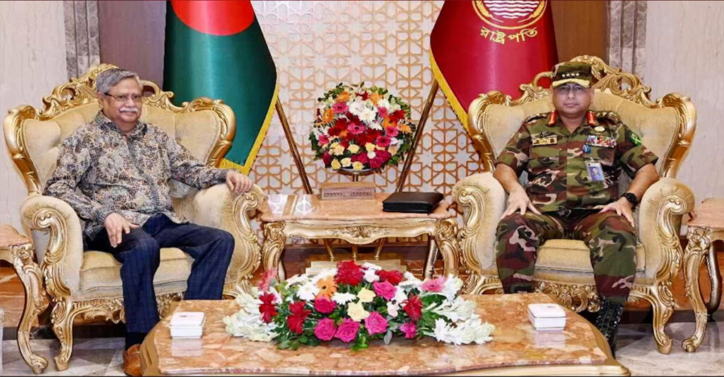 রাষ্ট্রপতি মো. সাহাবুদ্দিনের সঙ্গে সাক্ষাৎ করেছেন সেনাবাহিনী প্রধান জেনারেল ওয়াকার-উজ-জামান। সোমবার (৯ সেপ্টেম্বর) দুপুরে বঙ্গভবনে গিয়ে সেনাপ্রধান রাষ্ট্রপতির সঙ্গে এ সাক্ষাৎ করেন।