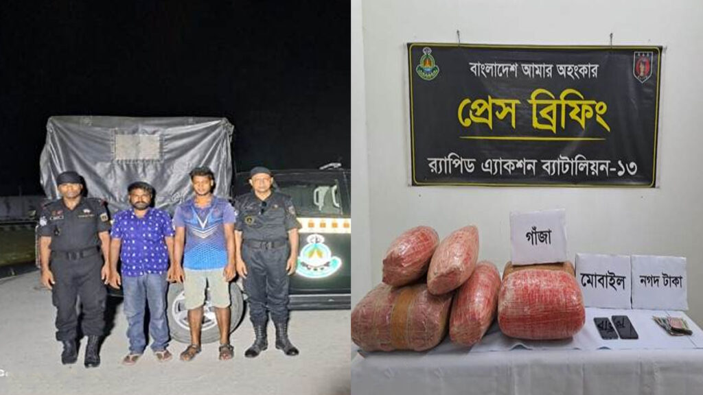 র্যাব-১৩ রংপুরের সহকারী মিডিয়া পরিচালক সালমান নুর আলম জানান, রাতে রংপুর বগুড়া মহাসড়কের ওপর একটি ট্রাকে তল্লাশি চালায়। এ সময় তারা সাড়ে ৩৫ কেজি গাঁজা ও ২৪০ বস্তা ধান উদ্ধার করে।