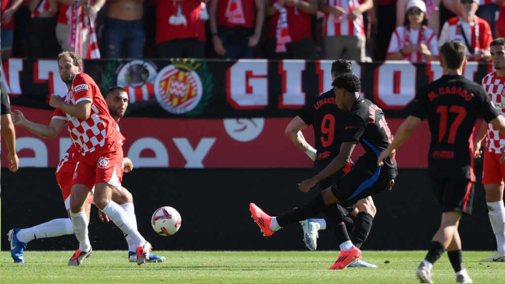 রোববার (১৫ সেপ্টেম্বর) নিজেদের ঘরের মাঠ এস্তাদি মিউনিসিপ্যাল ডি মন্টিলিভি স্টেডিয়ামে বার্সেলোনাকে আতিথ্য জানায় জিরোনা। ম্যাচের শুরু থেকেই বল দখল করে সুন্দর ফুটবলের পসরা সাজায় হ্যান্সি ফ্লিকের শিষ্যরা। ৬ মিনিটের মাথায় গোল পেতে পারতেন ইয়ামাল, তবে সেই সুযোগ তিনি কাজে লাগাতে পারেননি। গোলের সুযোগ এসেছিল রাফিনহার সামনেও, তিনিও বল জালে জড়াতে পারেননি।