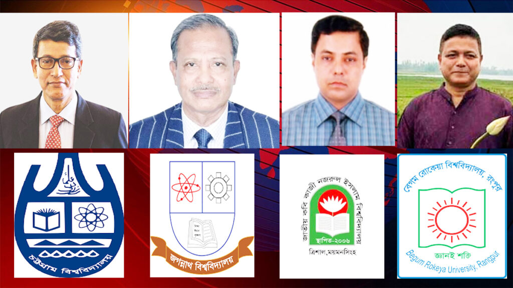একইসাথে চারটি বিশ্ববিদ্যালয়ে নতুন উপাচার্য নিয়োগ করে প্রজ্ঞাপন জারি করেছে শিক্ষা মন্ত্রণালয়। চট্টগ্রাম বিশ্ববিদ্যালয় (চবি), ঢাকার জগন্নাথ বিশ্ববিদ্যালয় (জবি), ময়মনসিংহের জাতীয় কবি কাজী নজরুল ইসলাম বিশ্ববিদ্যালয় ও রংপুরের বেগম রোকেয়া বিশ্ববিদ্যালয় (বেরোবি) নতুন ভিসি পেয়েছে।