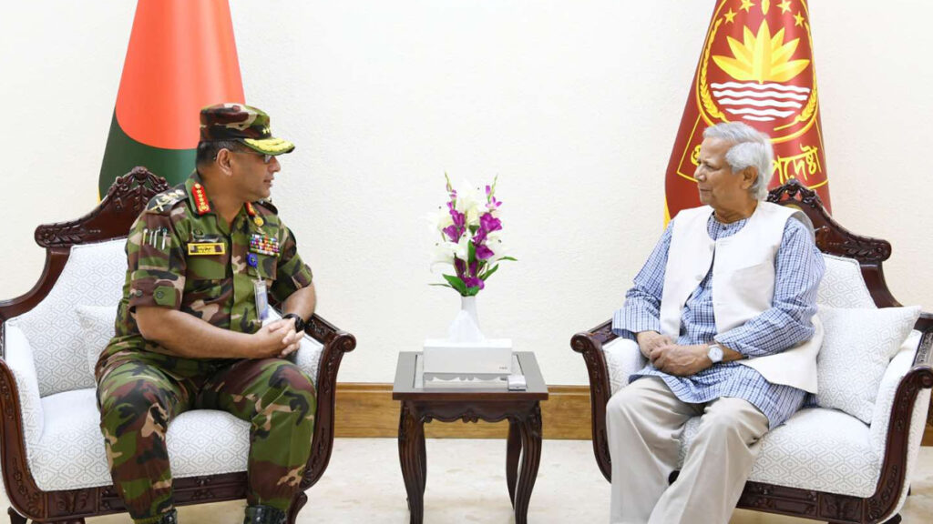 এ সময় তিনি দেশের আইন-শৃঙ্খলা রক্ষা পরিস্থিতি বিষয়ে প্রধান উপদেষ্টা ড. ইউনূসকে অবহিত করেন। এছাড়া দেশের অভ্যন্তরীণ নানা বিষয়ে আলোচনা করেন তারা। আইনশৃঙ্খলা পরিস্থিতির উন্নতিতে সেনাবাহিনীর সক্রিয় ভূমিকার প্রশংসা করেন প্রধান উপদেষ্টা।