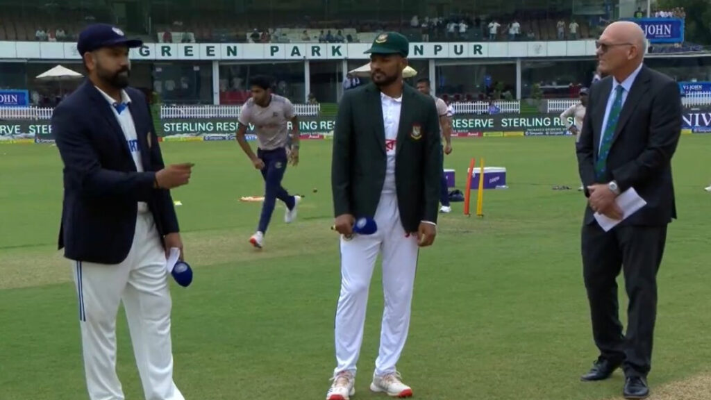 ভারতের বিপক্ষে কানপুর টেস্টের প্রথম দিনে মুখোমুখি হচ্ছে বাংলাদেশ। চেন্নাই টেস্টে বড় পরাজয়ে শুরু করা বাংলাদেশ কানপুর টেস্টে ঘুরে দাঁড়াতে চায়। রাতভর বৃষ্টির কারণে মাঠ ভেজা থাকায় নির্ধারিত সময়ে টস হয়নি, এক ঘণ্টা পর হলো টস। যেখানে টস জিতে বোলিংয়ের সিদ্ধান্ত নিয়েছেন ভারতীয় অধিনায়ক রোহিত শর্মা।