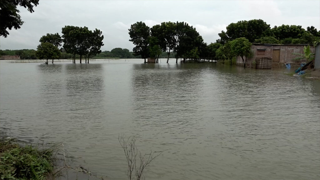 এতে পদ্মার পানি বেড়ে প্লাবিত হয়েছে শিবগঞ্জের নদী তীরবর্তী চরাঞ্চলের বিস্তীর্ণ এলাকা। রাস্তাঘাট, ফসলি জমিসহ বাড়িঘরেও উঠেছে পানি।