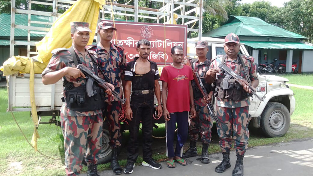 আটকরা হলেন, ভারতের উত্তর চব্বিশ পরগনা জেলার নিউটাউন থানার গৌরাঙ্গনগর গ্রামের সুরঞ্জন সরকারের ছেলে প্রকাশ সরকার (৩৯) ও বিধু সরকারের ছেলে দিলু সরকার (২০)।
