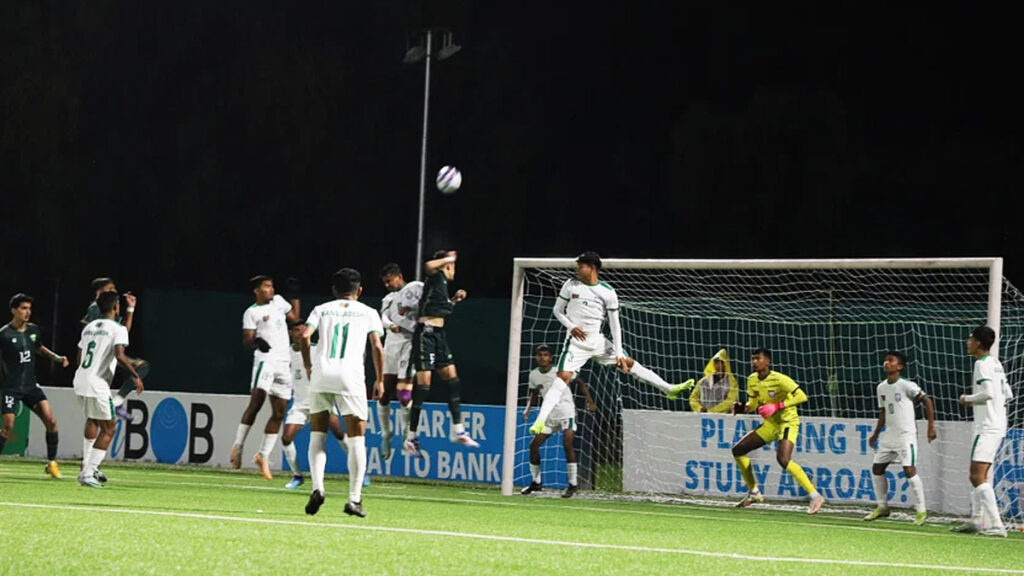 সাফ অনূর্ধ্ব-১৭ চ্যাম্পিয়নশিপের সেমিফাইনালের লড়াইয়ে পাকিস্তানের মুখোমুখি হয় বাংলাদেশ। শিরোপা নির্ধারণী ম্যাচে জায়গা করে নেয়ার লড়াইয়ে নির্ধারিত সময় ম্যাচ ড্র হয়। এরপর টাইব্রেকারে পাকিস্তানকে ৮-৭ গোলে হারিয়ে ফাইনালে ওঠে বাংলাদেশের যুবারা।