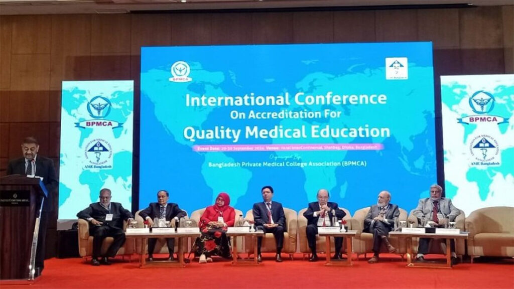 আজ রোববার (২৯ সেপ্টেম্বর) সকালে রাজধানীর একটি বেসরকারি হোটেলে আয়োজিত ‘ইন্টারন্যাশনাল কনফারেন্স অন অ্যাক্রেডিটেশন ফর মেডিকেল এডুকেশন’র উদ্বোধনী সেমিনারে তারা এ দাবি জানান।