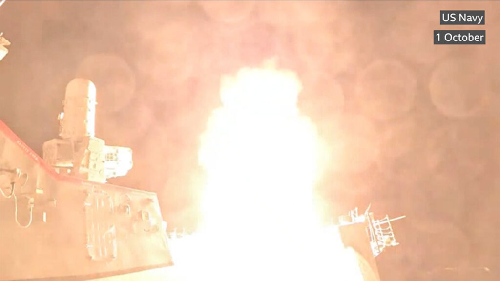 বুধবার (২ অক্টোবর) পেন্টাগন প্রকাশিত ফুটেজে দেখা যায়, ইউএসএস বার্কলে থেকে ছোড়া হয় প্রতিরক্ষা মিসাইল। ভূমধ্যসাগরের পূর্বে মোতায়েন রয়েছে মার্কিন রণতরীটি।