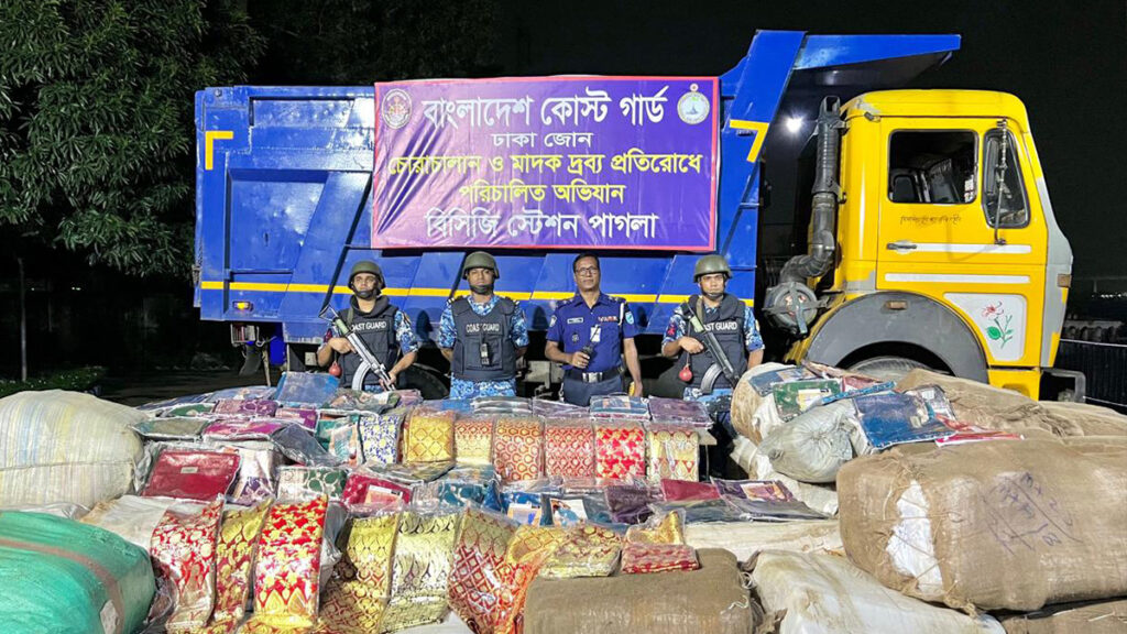 নারায়ণগঞ্জে ভারত থেকে শুল্ক ফাঁকি দিয়ে আনা প্রায় ৬ কোটি টাকা মূল্যের শাড়ি ও কাপড় জব্দ করেছে কোস্ট গার্ড। শুক্রবার (৪ অক্টোবর) কোস্ট গার্ড সদর দফতরে এক তথ্য জানায় বাহিনীটি।