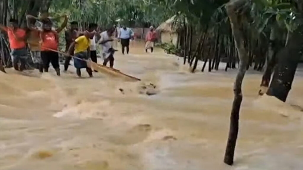 এদিকে, বন্যা পরিস্থিতির আরও অবনতি হয়েছে নেত্রকোণায়। সোমেশ্বরী নদীর পানি কমলেও, উব্দাখালী নদীর পানি বইছে বিপৎসীমার ২৯ সেন্টিমিটার ওপরে। বেড়েছে কংশ নদীর পানিও। এতে প্লাবিত হচ্ছে নতুন নতুন এলাকা। দুর্গাপুর, কলমাকান্দাসহ ৫ উপজেলার দেড়শতাধিক গ্রাম জলমগ্ন। এতে নেত্রকোণায় পানিবন্দি হয়ে আছে লক্ষাধিক মানুষ। পানির তোড়ে ভেসে গেছে ফসলের মাঠ-মাছের ঘের।