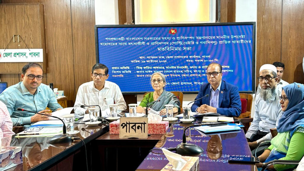 পাবনা জেলা প্রশাসক মোহাম্মদ মফিজুল ইসলামের সভাপতিত্বে সভায় আরও বক্তব্য দেন, মৎস্য ও প্রাণিসম্পদ মন্ত্রণালয়ের সচিব সাঈদ মাহমুদ বেলাল হায়দর, জেলা প্রাণিসম্পদ কর্মকর্তা ডা. এ. কে. এস. এম মুশাররফ হোসেন, জেলা মৎস্য কর্মকর্তা আবুল কালাম। এসময় আরও উপস্থিত ছিলেন পাবনার বিভিন্ন উপজেলার মৎস্যজীবী ও খামারীরা।