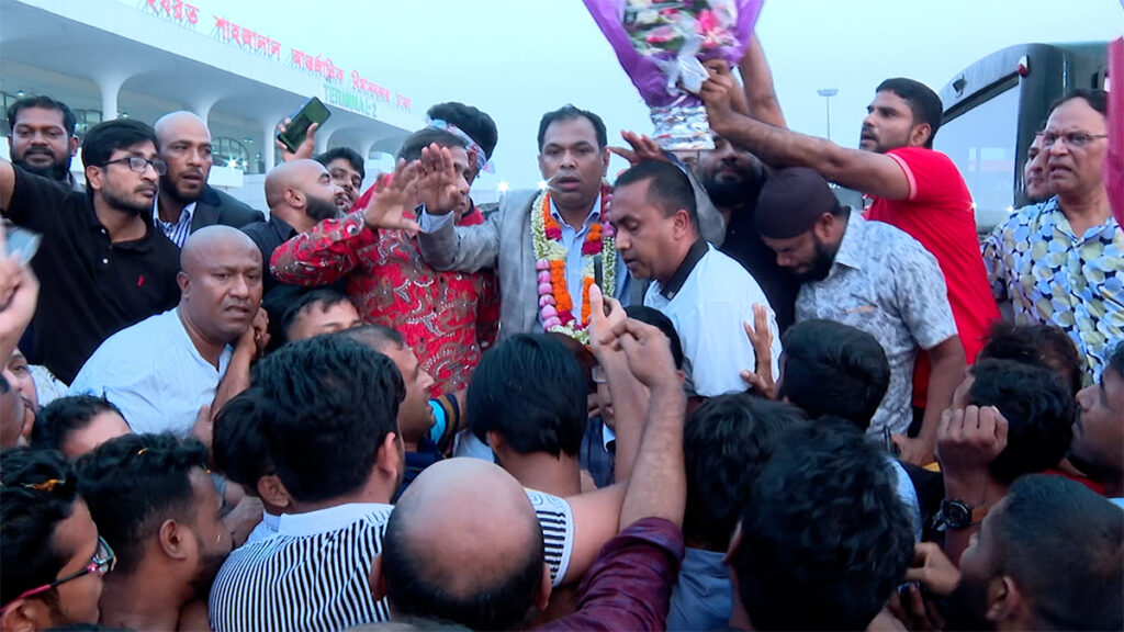 রোববার (২০ অক্টোবর) ভোরে সৌদি এয়ারলাইন্সের একটি ফ্লাইটে শাহজালাল আন্তর্জাতিক বিমানবন্দরে পৌঁছান তারা। এসময় বিমানবন্দরে তাদের ফুলেল শুভেচ্ছা জানাতে গিয়ে হট্টগোলে জড়ান স্বাগত জানাতে আসা নেতাকর্মীরা; হয় হাতাহাতিও। এতে ভোগান্তিতে পড়েন বিমানবন্দরে থাকা অন্য যাত্রীরা।