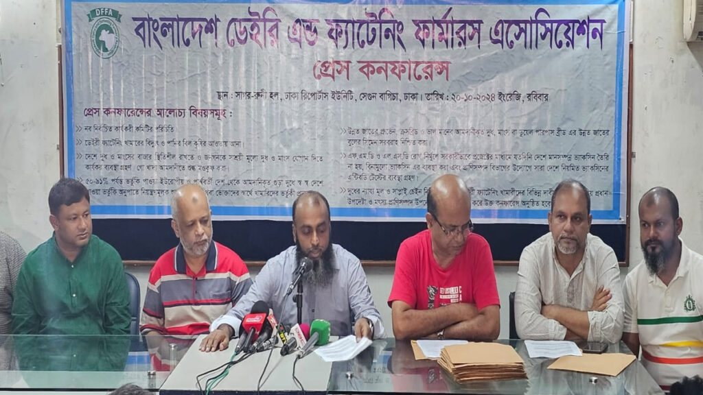 দেশে দুধ ও মাংসের বাজার স্থিতিশীল রাখা এবং সাশ্রয়ী মূল্যে বাজারে জোগান দিতে খামারিদের সহযোগিতা করার দাবি জানিয়েছেন বাংলাদেশ ডেইরি অ্যান্ড ফ্যাটেনিং ফার্মারস অ্যাসোসিয়েশন।