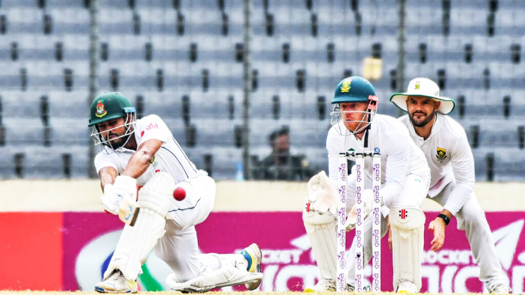 লিটন দাসও ব্যর্থ হন। মাত্র ৭ রান করে ফিরেছেন মহারাজের স্পিনে। আর তাতেই ১১২ রানে ষষ্ঠ উইকেট হারিয়ে ইনিংস হারের ঝুকিতে পড়ে বাংলাদেশ।