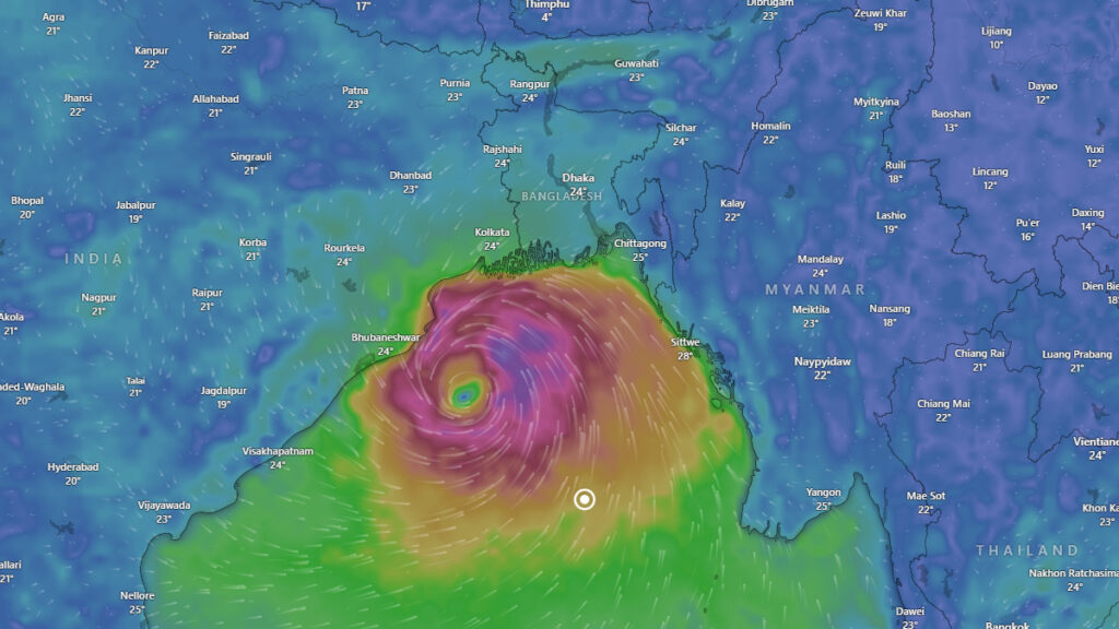 এতে আরও বলা হয়, ঘূর্নিঝড়টি বুধবার দিবাগত ৩টায় চট্টগ্রাম সমুদ্রবন্দর থেকে ৬০৫ কিলোমিটার ও কক্সবাজার সমুদ্র বন্দর থেকে ৫৬০ কিলোমিটার দক্ষিণপশ্চিমে, মোংলা সমুদ্রবন্দর থেকে ৫১০ কিমি দক্ষিণে এবং পায়রা সমুদ্রবন্দর থেকে ৪৯০ কিলোমিটার দক্ষিণ-দক্ষিণপশ্চিমে অবস্থান করছিল। ঘূর্ণিঝড় কেন্দ্রের ৬৪ কিলোমিটারের এর মধ্যে বাতাসের একটানা সর্বোচ্চ গতিবেগ ঘণ্টায় ৯০ কিমি, যা দমকা অথবা ঝোড়ো হাওয়ার আকারে ঘণ্টায় ১১০ কিমি পর্যন্ত বৃদ্ধি পাচ্ছে। ঘূর্ণিঝড় কেন্দ্রের নিকটবর্তী এলাকায় সাগর খুবই উত্তাল রয়েছে। তাই চট্টগ্রাম, কক্সবাজার, মোংলা ও পায়রা সমুদ্র বন্দরকে ৩ নম্বর স্থানীয় সতর্কতা সংকেত দেখাতে বলা হয়েছে।