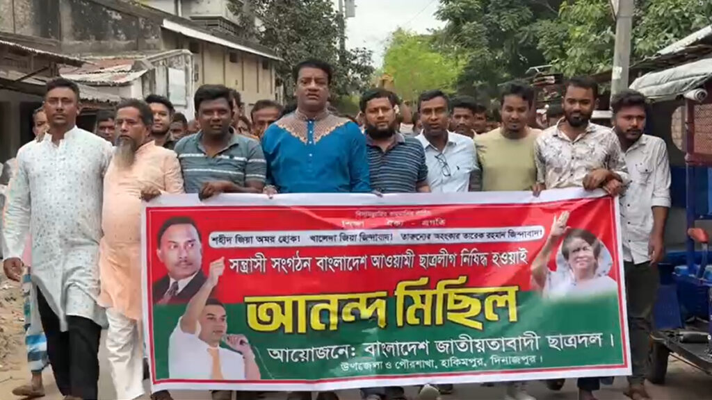 সন্ত্রাসী সংগঠন হিসেবে বাংলাদেশ ছাত্রলীগকে নিষিদ্ধ ঘোষনা করায় দিনাজপুরের হিলিতে আনন্দ মিছিল ও সমাবেশ করেছে বাংলাদেশ জাতীয়তাবাদী ছাত্রদল।