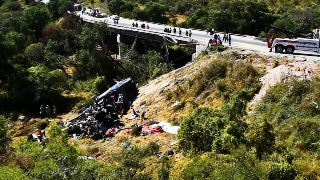 কর্তৃপক্ষ জানায়, দেশটির জাকাতেকাস অঞ্চলের একটি হাইওয়েতে বাস বিধ্বস্তের ঘটনায় এই প্রাণহানি হয়। যাত্রীবাহী বাসটির সাথে একটি ট্রেইলার ট্রাক্টরের সংঘর্ষ ঘটে। এতে বাসটি হাইওয়ে থেকে বেশ খানিকটা নিচে পড়ে যায়। কয়েকটি মরদেহ গিরিখাদে গিয়ে পড়ে।