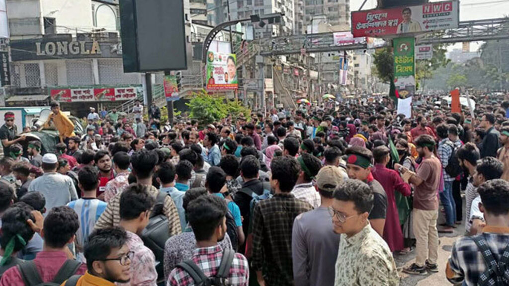মঙ্গলবার (২৯ অক্টোবর) দুপুরে, রাজধানীর সাইন্সল্যাবরেটরি এলাকায় ব্লকেড কমর্সূচি পালন করেন শিক্ষার্থীরা।