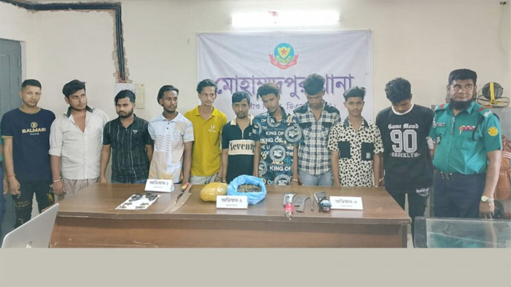 পৃথক আরেক অভিযানে মোহাম্মদপুর এলাকা থেকে ৯ জনকে গ্রেফতার করা হয়। এসময় তাদের কাছ থেকে দুই কেজি গাঁজা, দুটি সামুরাই, একটি চাপাতি, একটি ছুরি ও একটি অটোরিকশা জব্দ করা হয়।