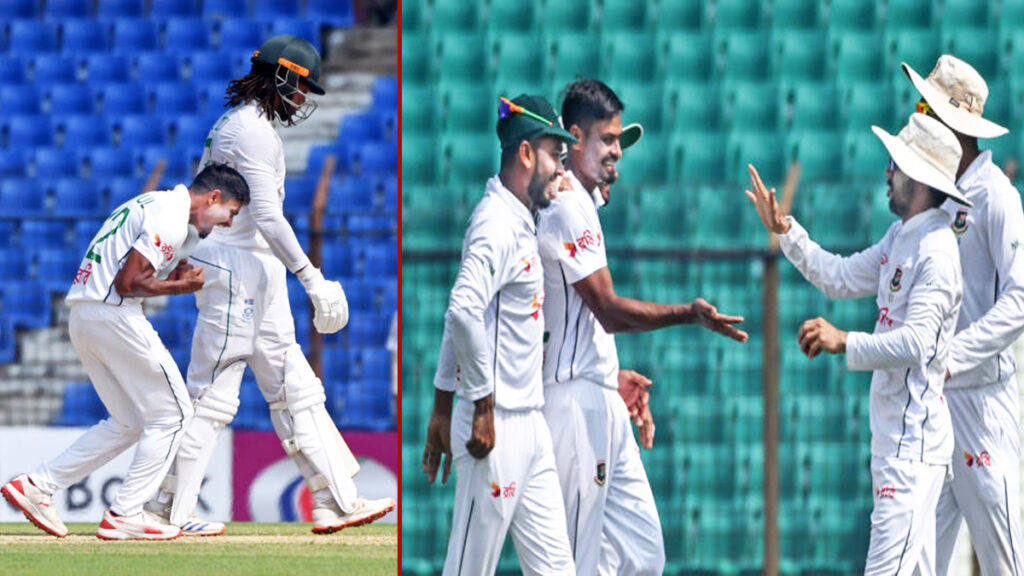 আগের দিন ২ উইকেটের পর আজ দ্রুতই ৩টি উইকেট তুলে নেন এই বাঁহাতি স্পিনার। অর্থাৎ প্রথম পাঁচ উইকেটের সবকটিই নিয়েছেন এ বাঁহাতি স্পিনার। তিনি যেন একাই বাংলাদেশ, একাই যেন হাত ঘুড়িয়ে বোলিং করে যাচ্ছেন!