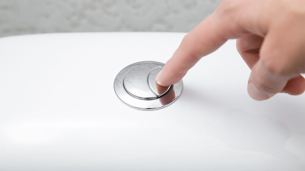দুইটি বাটন মূলত পানির পরিমিত ব্যবহারের জন্য দেয়া হয়ে থাকে। অর্থাৎ একটি বাটন কম পানি ফ্ল্যাশ করে, অপরটি বেশি। যে বাটনটি আকারে একটু বড় সেটি আসলে ৬-৯ লিটার পানি ব্যয় করে ফ্ল্যাশ করে। এটি দিয়ে কঠিন বর্জ্য ফ্ল্যাশ করা হয়। আরেকটি ছোট বাটন চাপলে আনুমানিক ৩ থেকে সাড়ে চার লিটার পানি খরচ হবে, যা তরল বর্জ্য ফ্ল্যাশ করতে ব্যবহার করা হয়ে থাকে।