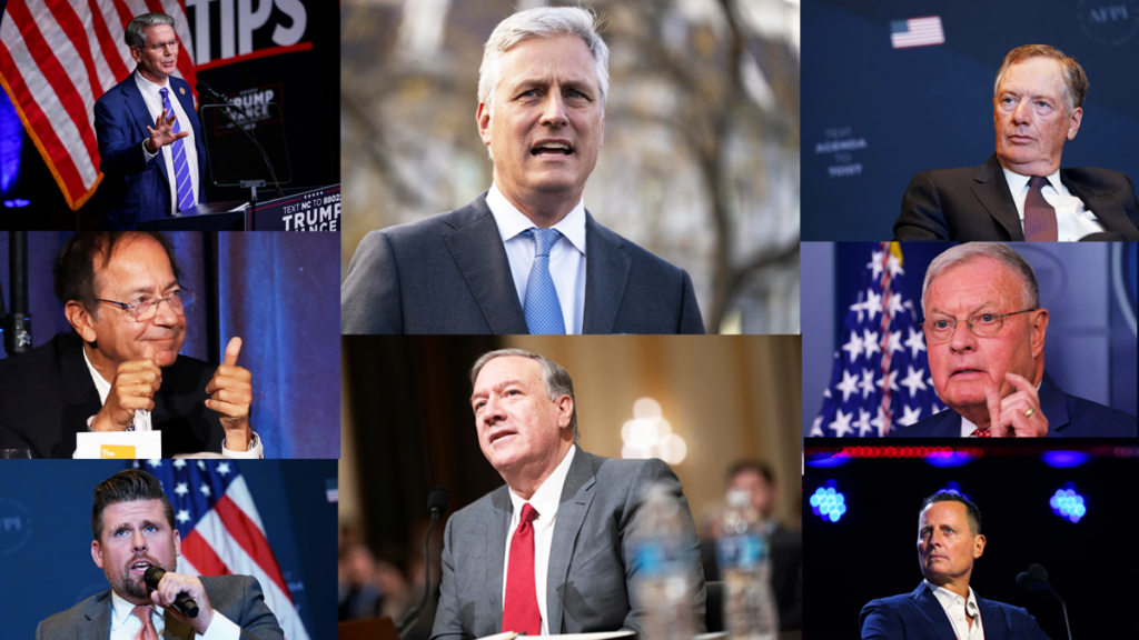 প্রথম মেয়াদে ট্রাম্পের শেষ জাতীয় নিরাপত্তা উপদেষ্টা রবার্ট ও’ব্রায়েন নবনির্বাচিত প্রেসিডেন্টের সঙ্গে ঘনিষ্ঠ সম্পর্ক রয়েছে। তারা দুজন প্রায়ই মার্কিন জাতীয় নিরাপত্তার বিষয়ে কথা বলেন। তিনি পররাষ্ট্রমন্ত্রী বা অন্যান্য শীর্ষ পররাষ্ট্রনীতি এবং জাতীয় সুরক্ষামূলক পদের দৌড়ে এগিয়ে রয়েছেন।