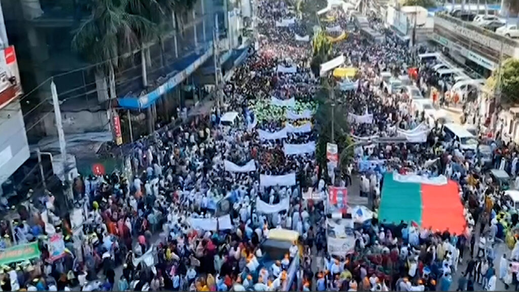 এই শোভাযাত্রার উদ্বোধন করেছেন বিএনপির ভারপ্রাপ্ত চেয়ারম্যান তারেক রহমান। ভার্চ্যুয়ালি যুক্ত হয়ে তিনি উদ্বোধন করেন। এ সময় বক্তব্যে তারেক রহমান বলেন, রাজপথে লাখো জনতার এই মিছিল দেশের স্বার্থরক্ষার মিছিল। নিজের অধিকার রক্ষার মিছিল। নিজের ভোট প্রয়োগের অধিকার রক্ষার মিছিল আজ। মানুষের ভোটের অধিকার নিশ্চিত করার পক্ষে অবস্থান তুলে ধরে তিনি বলেন, ‘স্বৈরাচার বা ফ্যাসিবাদমুক্ত পরিবেশেও স্বল্প আয়ের মানুষদের বাজার সিন্ডিকেটের অভিশাপ থেকে মুক্ত করা অসম্ভব হয়ে পড়বে, যদি না মানুষের সরাসরি ভোটের অধিকার আমরা নিশ্চিত করতে পারি।’