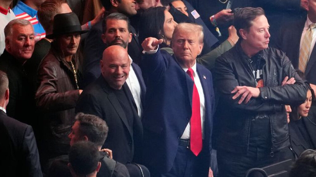 ভোটে বাজিমাতের পর বেশ ফুরফুরে মেজাজে নবনির্বাচিত মার্কিন প্রেসিডেন্ট ডোনাল্ড ট্রাম্প। ধনকুবের ইলন মাস্ককে সাথে নিয়ে গেলেন বিশ্বের সবচেয়ে বড় মিক্সড মার্শাল আর্ট প্রতিযোগিতা- ইউএফসি’র অ্যারেনায়। এক প্রতিবেদনে ব্রিটিশ সংবাদমাধ্যম বিবিসি নিউজ এ তথ্য জানায়।