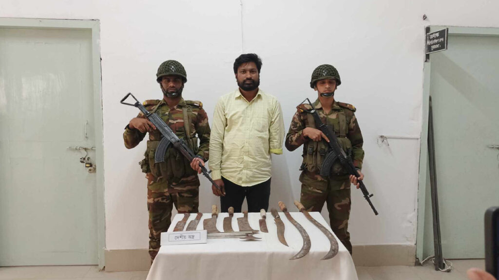 চুয়াডাঙ্গা সেনা ক্যাম্প সূত্রে জানা গেছে, সোমবার বিশেষ অভিযানে আটকের পরে তার স্বীকারোক্তিতে বাড়িতে অভিযান চালানো হয়। অভিযানে তার বাড়ি থেকে ২টি রামদা, ১টি চাইনিজ কুড়াল, ১টি ছুড়ি ও ৬টি চাপাতি উদ্ধার করা হয়। পরে মঙ্গলবার তাকে দর্শনা থানা পুলিশের কাছে হস্তান্তর করা হয়।