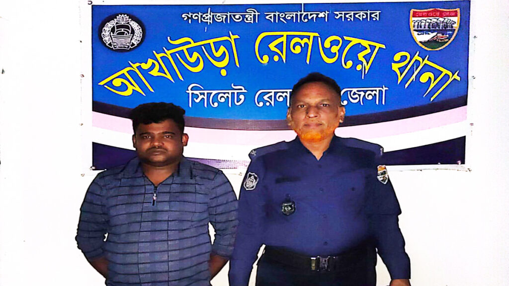 পূর্বাঞ্চল রেলপথের আখাউড়া রেলওয়ে জংশন স্টেশনে অভিযান চালিয়ে বিদেশি মদসহ ভারতীয় পাসপোর্টধারী একজনকে গ্রেফতার করেছে পুলিশ। তার নাম শেখ আবুল হায়াত (২৮)। বৃহস্পতিবার (২১ নভেম্বর) বিকেলে তাকে গ্রেফতার করে আখাউড়া রেলওয়ে থানা পুলিশ।