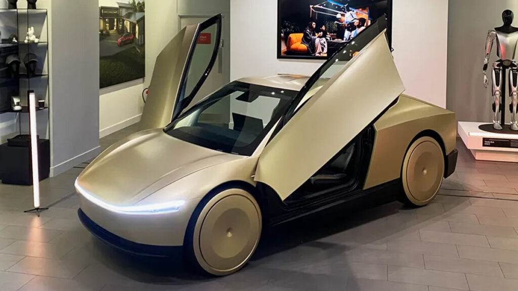 জার্মানিতে জমকালো আয়োজনে হলো বিশ্বের সবচেয়ে অত্যাধুনিক অটোমোবাইল প্রযুক্তি টেসলার নব সংযোজন ‘সাইবারক্যাব’র উন্মোচন। স্থানীয় সময় বুধবার (২০ নভেম্বর) বার্লিনের একটি শপিংমলে সর্বসাধারণের জন্য ছিলো গাড়িটির প্রদর্শনী। সোনালী বর্ণের নতুন এবং অদেখা প্রযুক্তির এ সংস্করণ দেখতে ভিড় করছে বহু মানুষ। এক প্রতিবেদনে টপ গেয়ার এ তথ্য জানায়।
