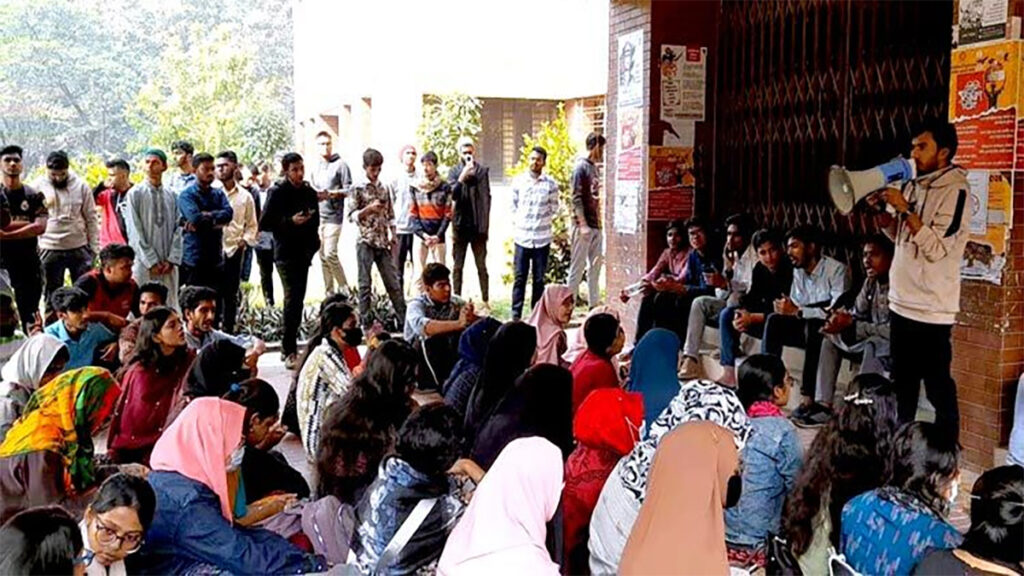 বেলা ১১টার দিকে একটি মিছিল নিয়ে তারা ব্যবসায় অনুষদের সামনে গিয়ে অবস্থান নেন। পরে সেখান থেকে বেলা সাড়ে ১১টার দিকে তারা মিছিল নিয়ে আবার নতুন প্রশাসনিক ভবনের সামনে গিয়ে অবস্থান নেন।