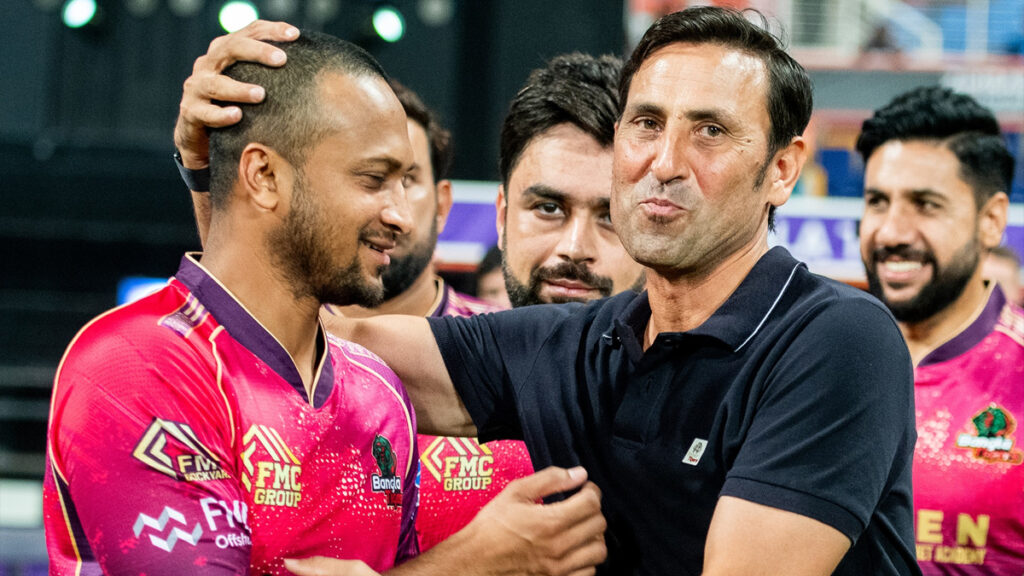 সাকিব আল হাসানের পারফরম্যান্সে মুগ্ধ হয়ে বাংলা টাইগার্সের কোচ ইউনিস খান প্রসংশায় ভাসিয়েছেন অধিনায়ক সাকিব আল হাসানকে। স্যাম্প আর্মির কাছে হারলেও বল হাতে উজ্জ্বল ছিলেন বাংলাদেশের এই সুপারস্টার। ২ ওভার বোলিং করে মাত্র ১৫ রান খরচায় শিকার করেন ২ উইকেট।