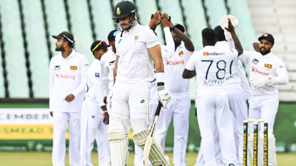 ব্যাট করতে নেমে দলীয় ৫৪ রানেই টপ অর্ডারের ৪ ব্যাটারকে হারায় স্বাগতিকরা। অসিথা ও বিশ্ব ফার্নান্ডের পর একাই প্রোটিয়া শিবিরে জোড়া আঘাত হানেন লাহিরু কুমারা।
