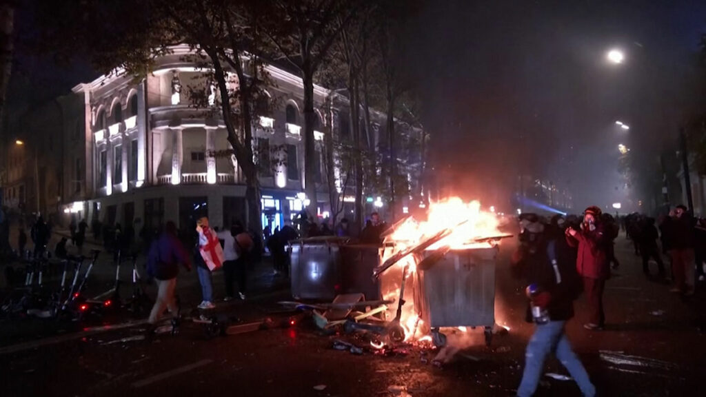 এদিন টানা চতুর্থ দিনের মতো জর্জিয়ার রাজধানী তিবিলিসে পার্লামেন্ট ভবনের সামনে জড়ো হয় হাজারও বিক্ষোভকারী। পুরো এলাকা ঘেরাও করে আতশবাজি ফুটিয়ে প্রতিবাদ জানায় তারা।