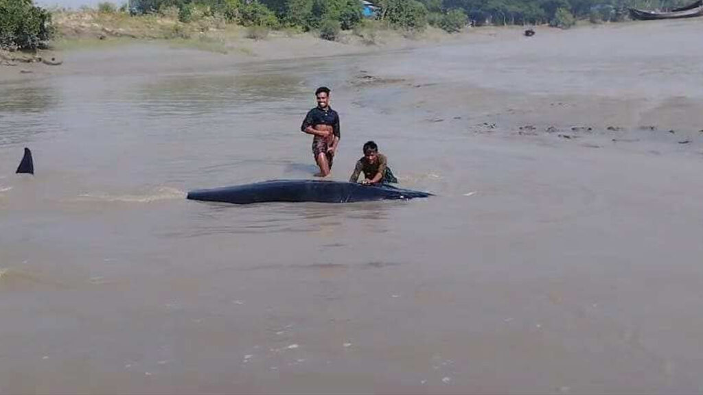 কন্টিনজেন্ট কমান্ডার কোস্টগার্ড হাতিয়া পেটি অফিসার মো. খালিছুর রহমান জানান, নদীতে টহল দেয়ার সময় একটি তিমি জেলেদের দড়িতে বাধা পড়তে দেখি আমরা। সেটিকে উদ্ধার করে নদীতে ছেড়ে দিলে আবার কিনারে চলে আসার চেষ্টা করে।