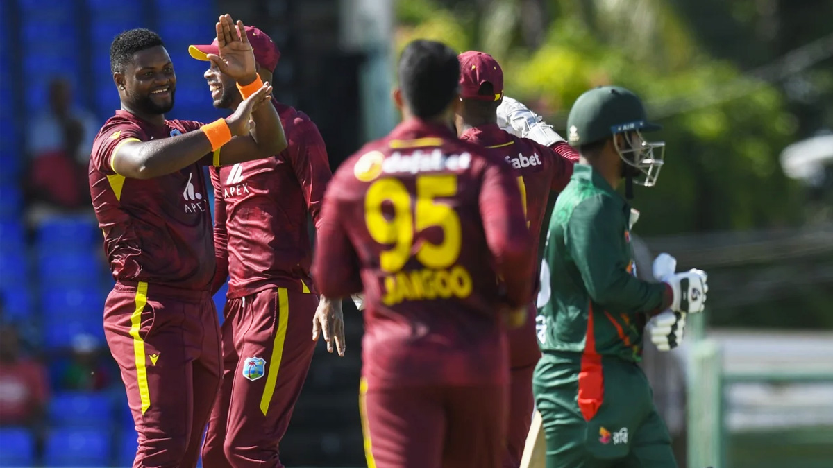 ওয়েস্ট ইন্ডিজের পক্ষে রোমারিও শেফার্ড ৫১ রানে ৩টি আর আলজেরি জোসেফ ৬৭ রানে নেন ২টি উইকেট।