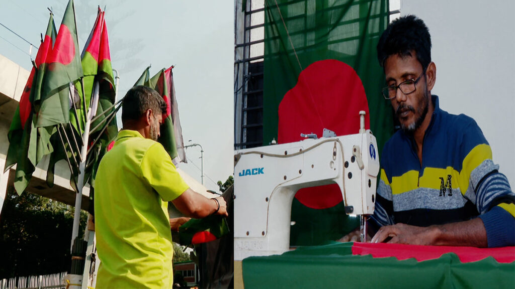 লাল-সবুজের একটা পতাকা মানেই তো গোটা বাংলাদে। দেশপ্রেমের নিপুণ আচড়ে বছরজুড়ে পতাকা তৈরিতে ব্যস্ত থাকেন কারিগরা। আর্থিক লেনদেন ছাড়িয়ে তাদের কাজে মিশে থাকে, দেশপ্রেম আর প্রগাঢ় মমতা। কেবল, এক জুলাই বিপ্লবেই বিক্রি হয়েছিল তাদের বানানো ৫ লাখ পতাকা।