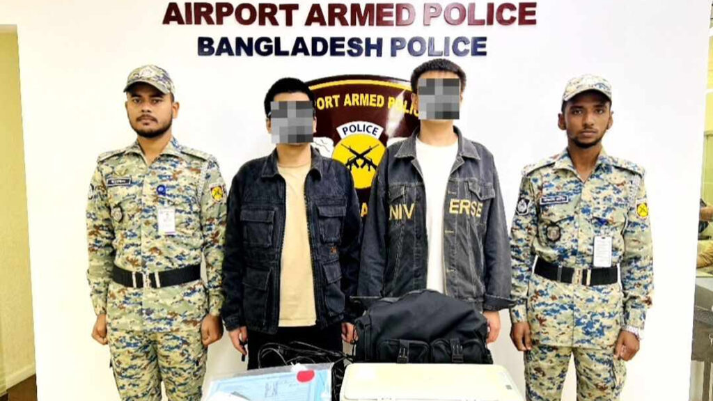 গ্রেফতারকৃত চীনা নাগরিক দুজন হলেন- ফ্যান গোউয়ে (২৭) ও ইয়াং জিকু (২৫)।