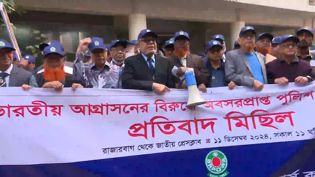 সীমান্তে হত্যা, ভারতীয় আগ্রাসন বন্ধ এবং ভারতের সাথে সব ধরনের চুক্তি বাতিলের দাবিতে প্রতিবাদ মিছিল করেছে বাংলাদেশ অবসরপ্রাপ্ত পুলিশ অফিসার্স কল্যাণ সমিতি।