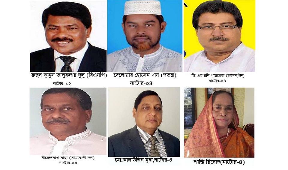 রিটার্নিং র্কমর্কতা ও জেলা প্রশাসক মোহাম্মদ শাহরয়িাজ জানান, মনোনয়নপত্রে স্বাক্ষর না থাকায় নাটোর-১ আসনে সাম্যবাদী দলের বীরন্দ্রেনাথ সাহা, নাটোর-৪ আসনে মুসলিমলীগের শান্তি রিবেরু, জাসদ (ইনু) দলের রনি পারভেজ, ঋণ খেলাপীর কারনে জাতীয় পার্টির আলাউদ্দিন মৃধা, জাল স্বাক্ষরের কারণে স্বতন্ত্র প্রার্থী দেলোয়ার হোসেন খান এবং নাটোর-২ আসনে জঙ্গিবাদ, নাশকতা ও ঋণ খেলাপী মামলায় সাজা হওয়ার কারণে বিএনপি’র কেন্দ্রীয় কমিটির সাংগঠনিক সম্পাদক এবং জেলা বিএনপি’র সভাপতি রুহুল কুদ্দুস তালুকদার দুলুর মনোনয়নপত্র বাতিল ঘোষনা করা হয়। তিনি জঙ্গিবাদ ও নাশকতা মামলায় যথাক্রমে ১২ বছর ও ৯বছরের সাজা প্রাপ্ত আসামী। মনোনয়ন বাতিল হওয়া প্রার্থীরা তাদের প্রার্থীতা ফিরে পেতে আগামী তিন দিনের মধ্যে নির্বাচন কমিশনারের সচিব বরাবর আপিল করতে পারবেন।