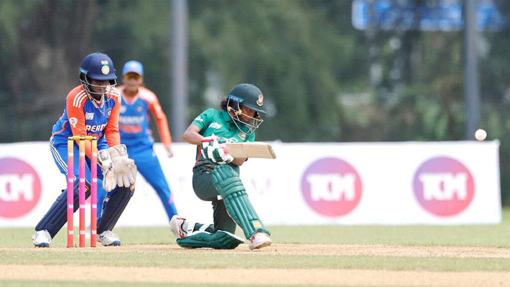 এর আগে, টস হেরে ব্যাট করতে নেমে শুরুটা খুব একটা খারাপ হয়নি ভারতের। দুই ওপেনার কামিলনী ও তৃষা মিলে গড়েন ২৩ রানের জুটি। কামিলনীকে ফিরিয়ে এই জুটি ভাঙেন ফারজানা ইয়াসমিন। ৯ বল খেললেও ৫ রানের বেশি করতে পারেননি তিনি।