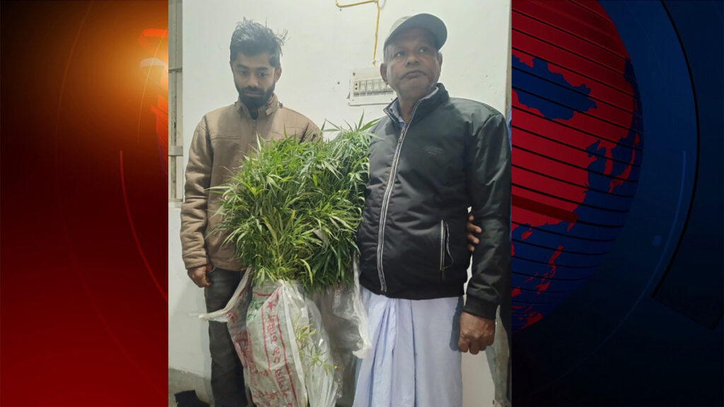 গ্রেফতারকৃতরা হলেন, মো. মঞ্জুরুল আলম ঠান্ডু (৫৫) ও মো. ফজলে রাব্বি (২৪)। তাদের বাড়ির পেছনের গোয়াল ঘরের পাশ থেকে গাছ দুইটি উদ্ধার করা হয়।