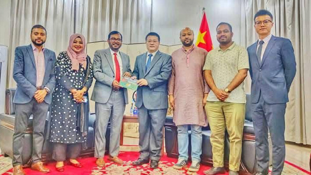 বাংলাদেশে গণপ্রজাতন্ত্রী চীনের রাষ্ট্রদূত এইচ.ই. ইয়াও ওয়েন এর সঙ্গে এক সৌজন্য সাক্ষাৎ ও মতবিনিময় বৈঠক করেছে আমার বাংলাদেশ (এবি) পার্টি নেতৃবৃন্দ। রোববার (২৯ ডিসেম্বর) বিকেলে চীন দূতাবাসে এই বৈঠক অনুষ্ঠিত হয়।