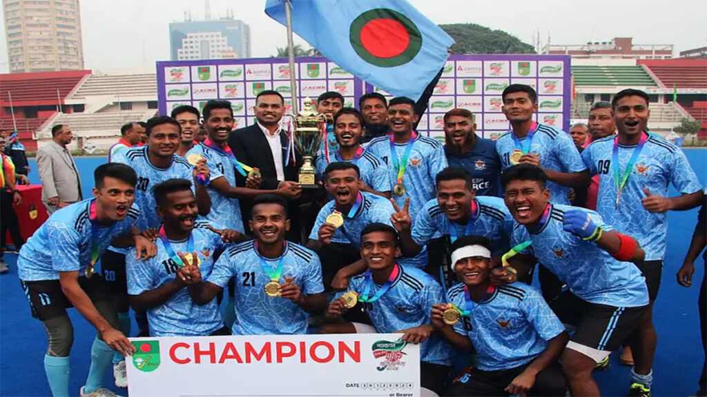 বিজয় দিবস হকি টুর্নামেন্টে চ্যাম্পিয়ন হয়েছে বাংলাদেশ বিমানবাহিনী। ফাইনালে বাংলাদেশ নৌবাহিনীকে ৫-৪ গোলে হারিয়ে টুর্নামেন্টে নিজেদের প্রথম শিরোপা জিতলো বিমান বাহিনী।