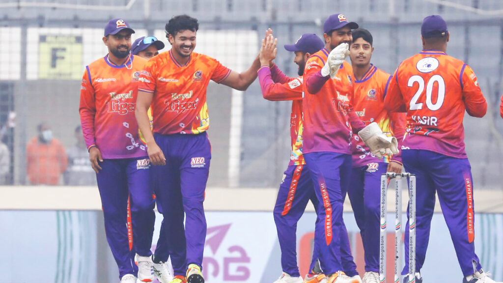 এক প্রান্ত আগলে রেখে ৪১ বলে ফিফটি তুলে নেন শাহাদত। বাকি ব্যাটারদে মধ্যে আলাউদ্দিন বাবু (১৩), মুকিদুল ইসলাম (০) এবং রঞ্জনি ২৪ রানে আউট হলেও ৯ উইকেট হারিয়ে ১৭৪ রানের লড়াকু পুঁজি পায় ঢাকা।