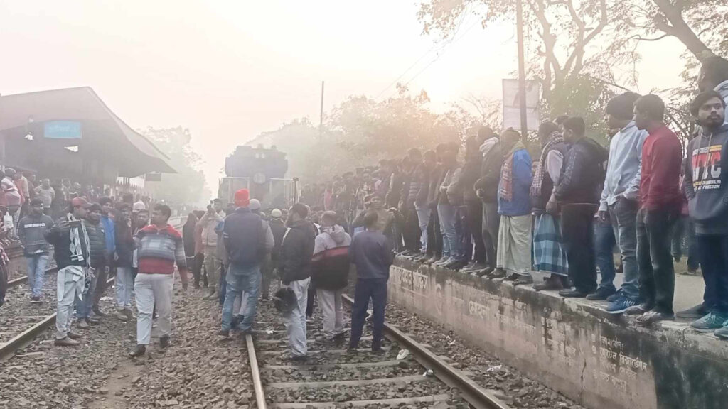 এ সময় আন্দোলনকারীরা ব্যানার-ফেস্টুন নিয়ে দুইপাশের প্লাটফর্ম ও রেললাইনের ওপরে অবস্থান করেন। অবস্থানকারীরা বেনাপোল এক্সপ্রেস ট্রেনটি অবিলম্বে আলমডাঙ্গাসহ পার্শ্ববর্তী জেলার দুটি থানা মেহেরপুরের গাংনী ও কুষ্টিয়ার ইবি থানার সাধারণ মানুষের সুবিধায় স্টপেজ দেয়ার দাবি তোলেন।