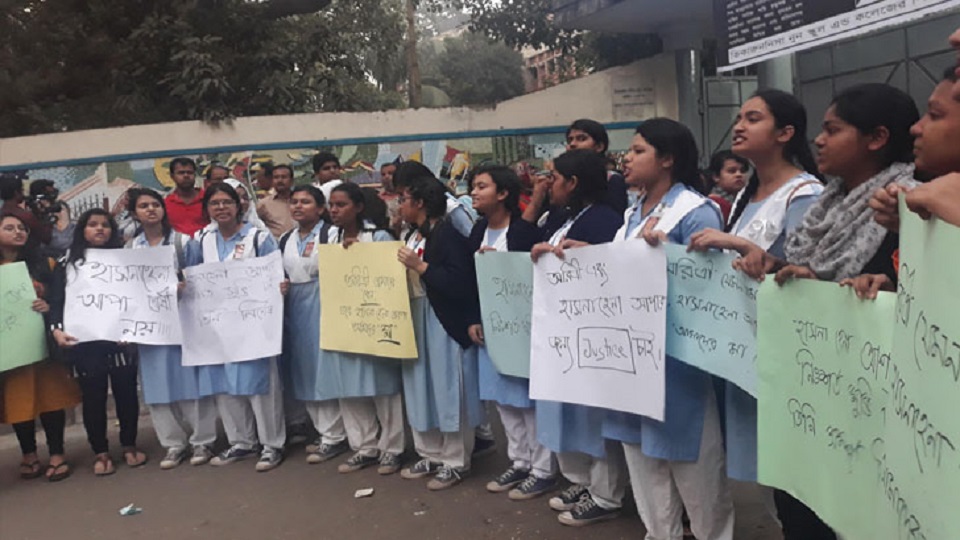 এসময় তারা ভিকারুন নিসার প্রভাতি শাখার শিক্ষক হাসনা হেনা কে নির্দোষ দাবি করে বিক্ষোভ করে। তার মুক্তির দাবিতে বিভিন্ন স্লোগান দেয়।