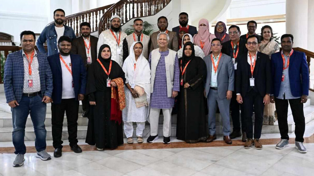 নবীন উদ্যোক্তাদের সঙ্গে বৈঠক করেছেন অন্তর্বর্তীকালীন সরকারের প্রধান উপদেষ্টা ড. মুহাম্মদ ইউনূস। শনিবার (১৮ জানুয়ারি) সন্ধ্যায় রাষ্ট্রীয় অতিথি ভবন যমুনায় এই বৈঠক অনুষ্ঠিত হয়। এতে ১৫ জন নারী ও পুরুষ উদ্যোক্তা অংশ নিয়েছেন।