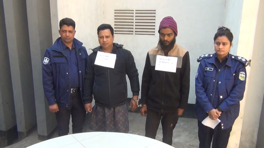 গ্রেপ্তারকৃতরা হলেন- তারাকান্দা উপজেলার গোয়াইলকান্দি গ্রামের আবদুর রহমান খানের ছেলে মো. নাঈম খান পাঠান (৩৮) ও ময়মনসিংহ সদরের আকুয়া মড়ল বাড়ি এলাকার মিন্টু চন্দ্র দে’র ছেলে তুষার চন্দ্র দে ওরফে মো.আবদুল্লাহ (২২)।