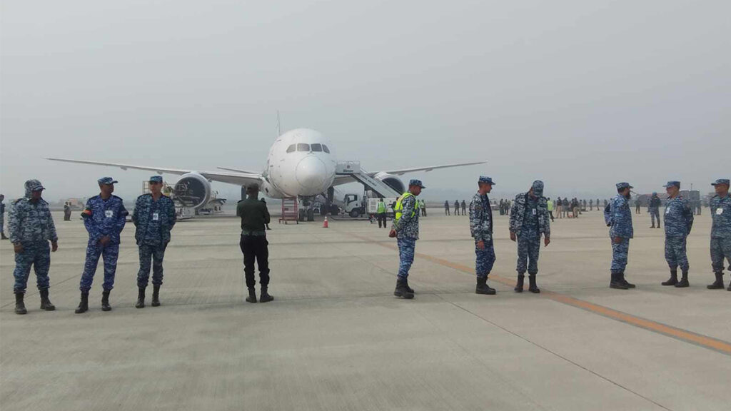 বুধবার ভোর সাড়ে ৪টার দিকে ঢাকার হযরত শাহজালাল আন্তর্জাতিক বিমানবন্দরে বার্তা আসে ফ্লাইটটিতে বোমা হামলার। এরপর বিমানবন্দরে সর্বোচ্চ সতর্কতা জারি করা হয়। পরে সকাল সাড়ে ৯টার দিকে বিমানটি ঢাকায় অবতরণ করে। এ সময় বিমানবাহিনীর সদস্যরা নিরাপত্তার সঙ্গে জরুরি ভিত্তিতে যাত্রীদের নামিয়ে আনেন। তবে তখন তাদের হ্যান্ড ব্যাগেজ প্লেনেই থাকে।